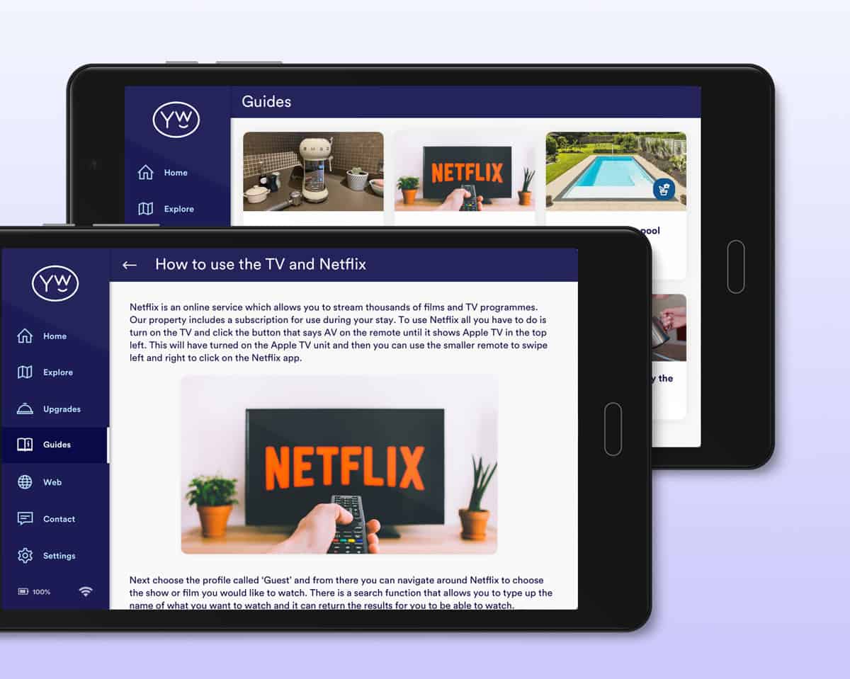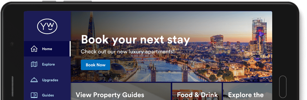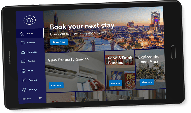 No. The tablet is already in the property, ready to use. Guests just tap the screen to access digital guidebooks, offers and support – no apps, logins or QR codes required.