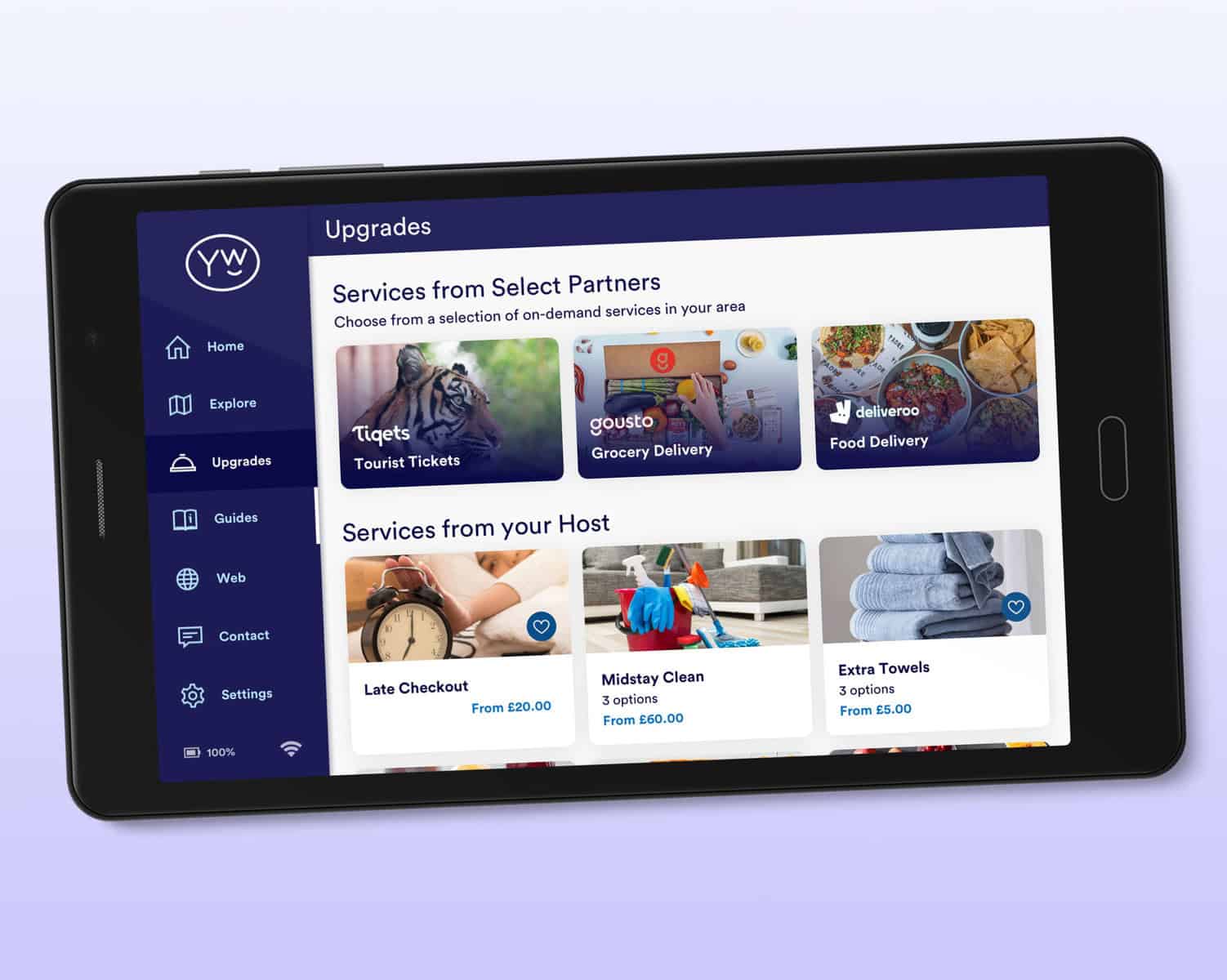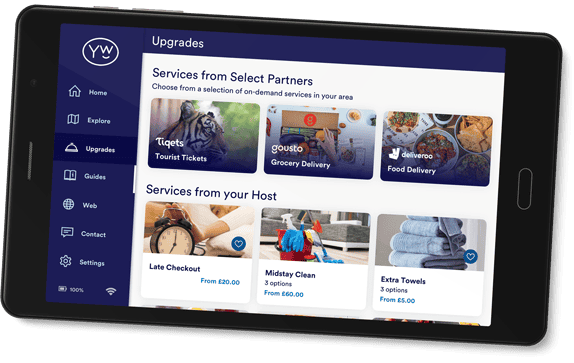 Turn the tablet into an AI optimised in-property point of sale system. The system learns which offers convert best by property, season and guest type, then automatically prioritises them.